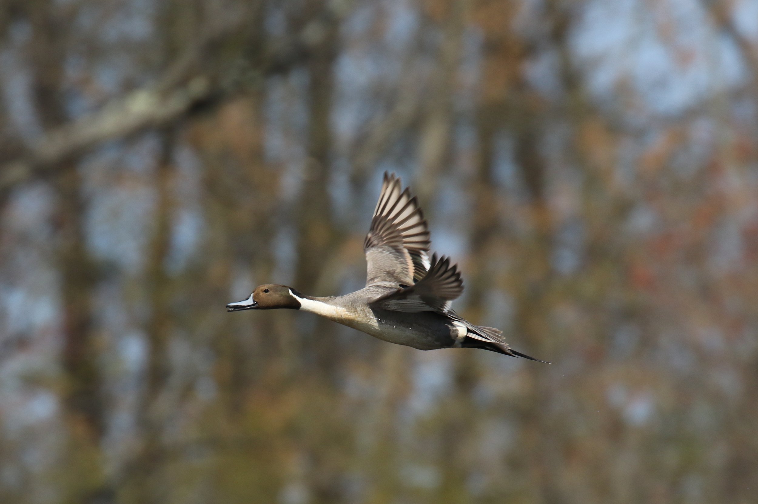 Northern Pintail drake in flight