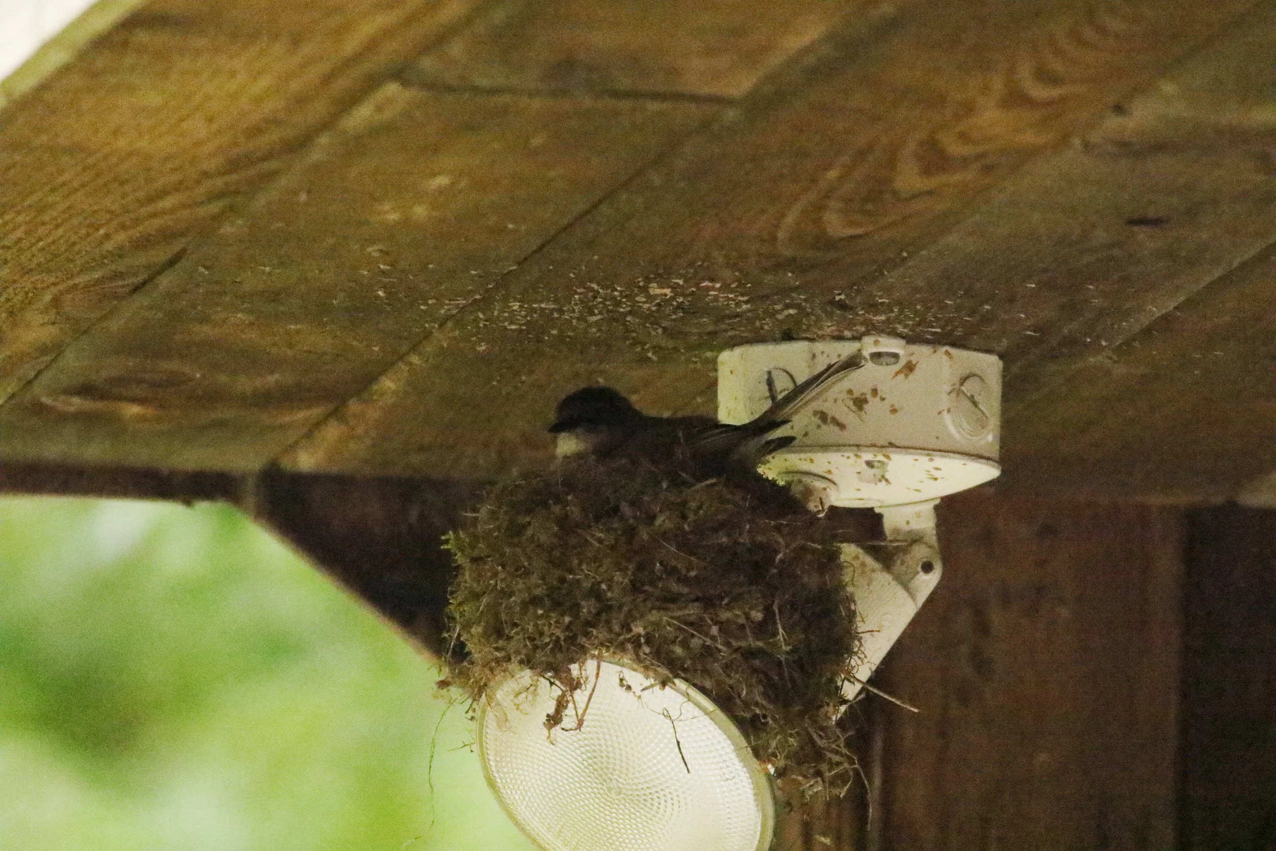 Eastern Phoebe under the garage eaves