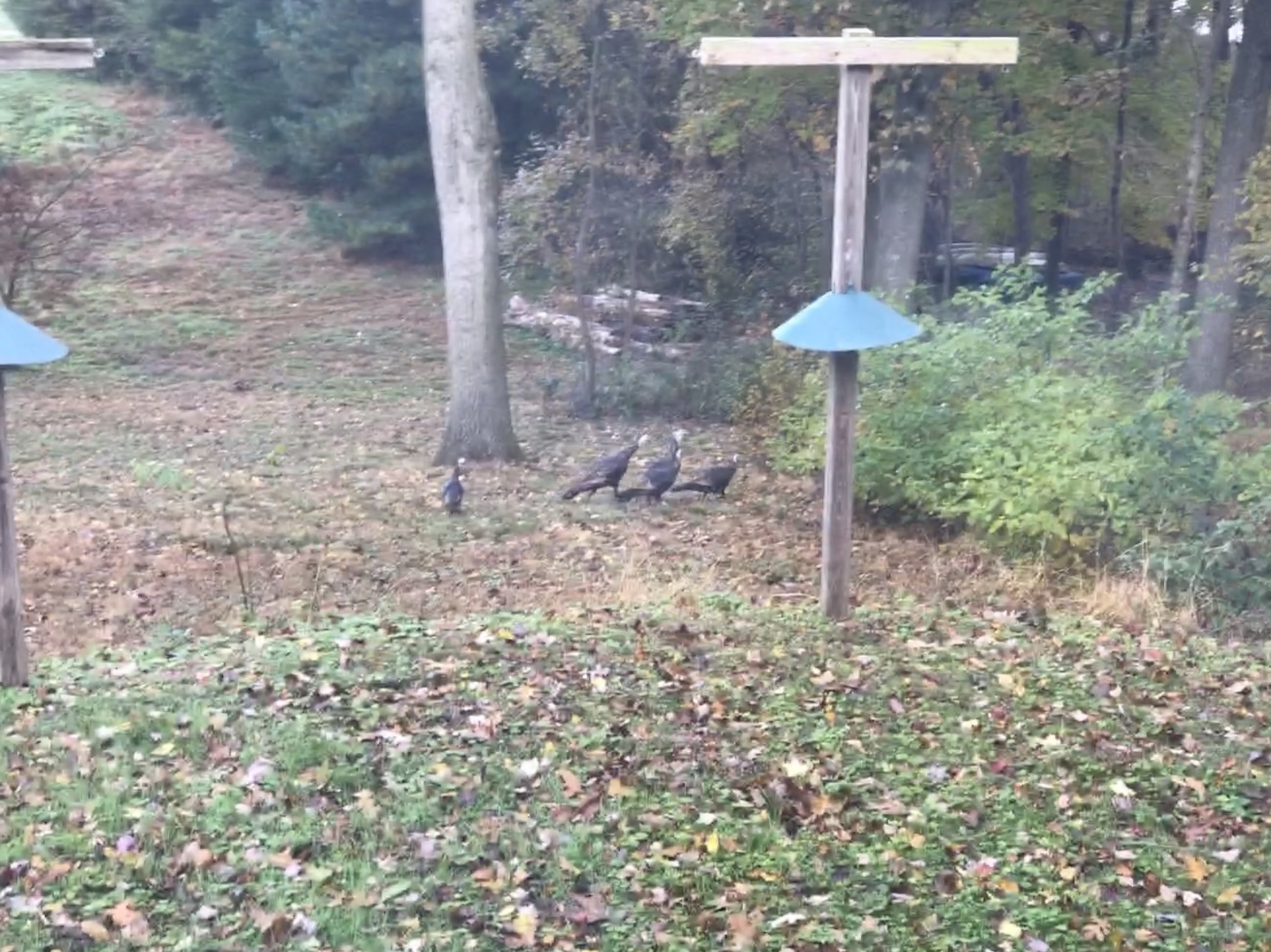 Turkeys under the feeders