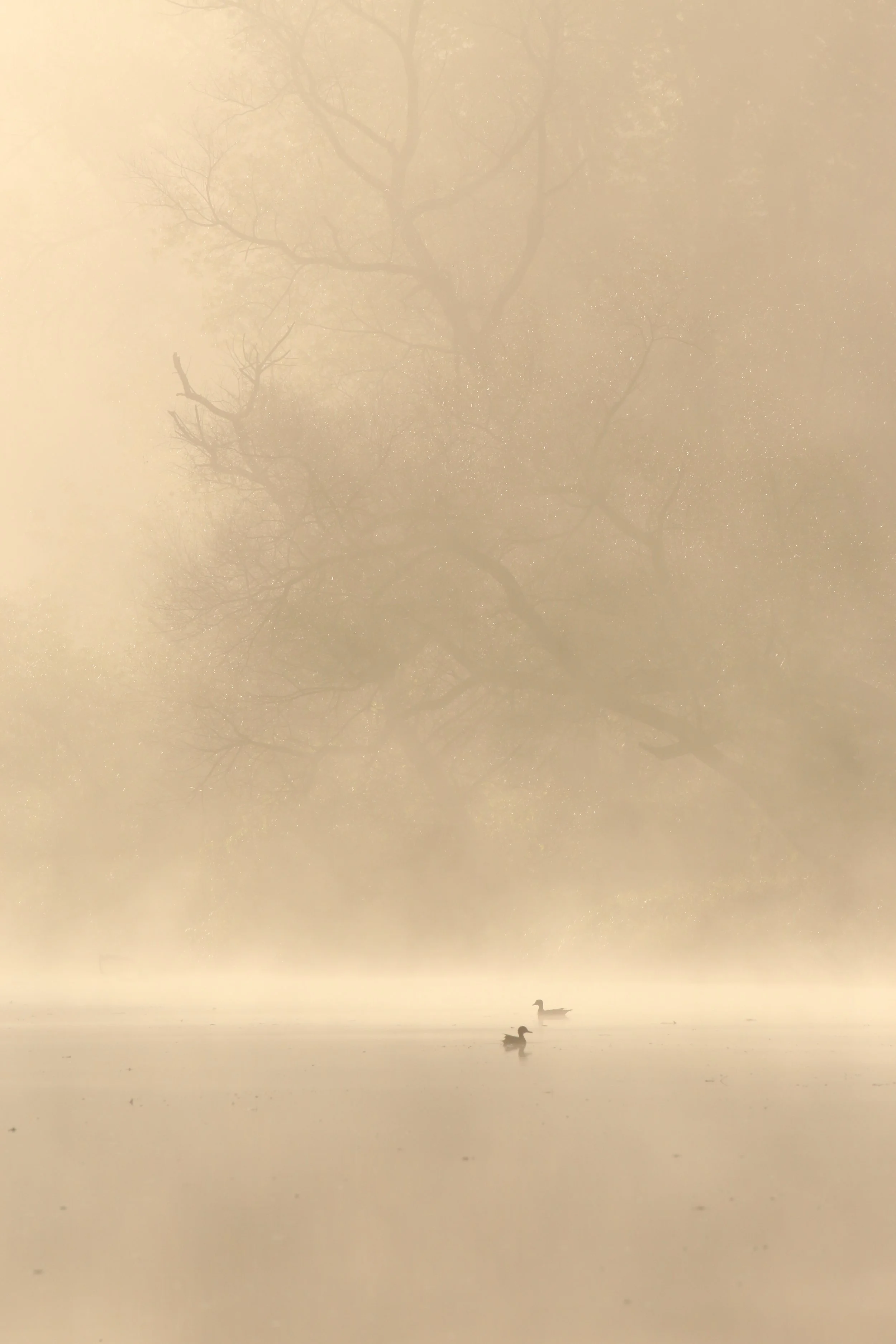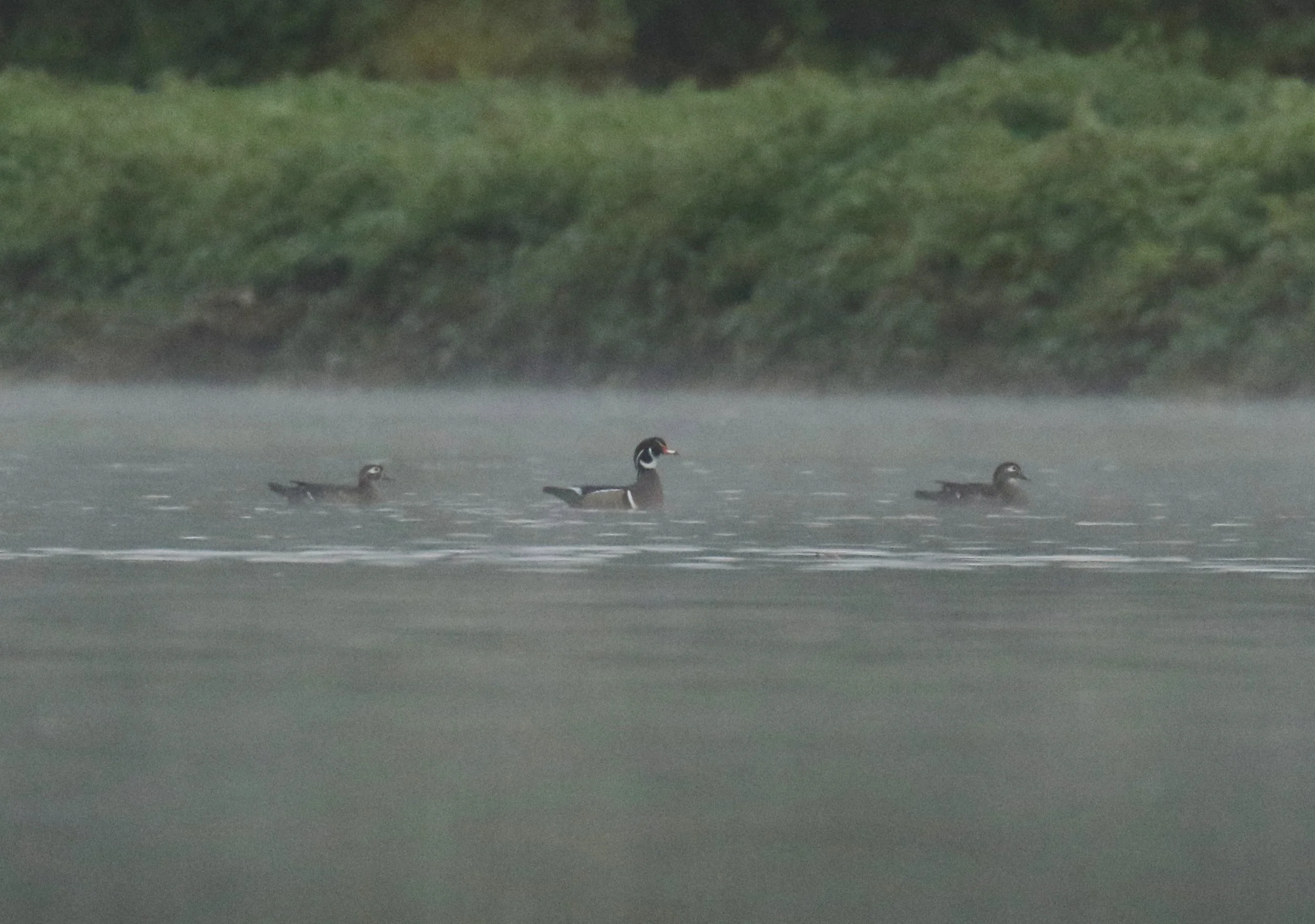 Wood Ducks in the mist